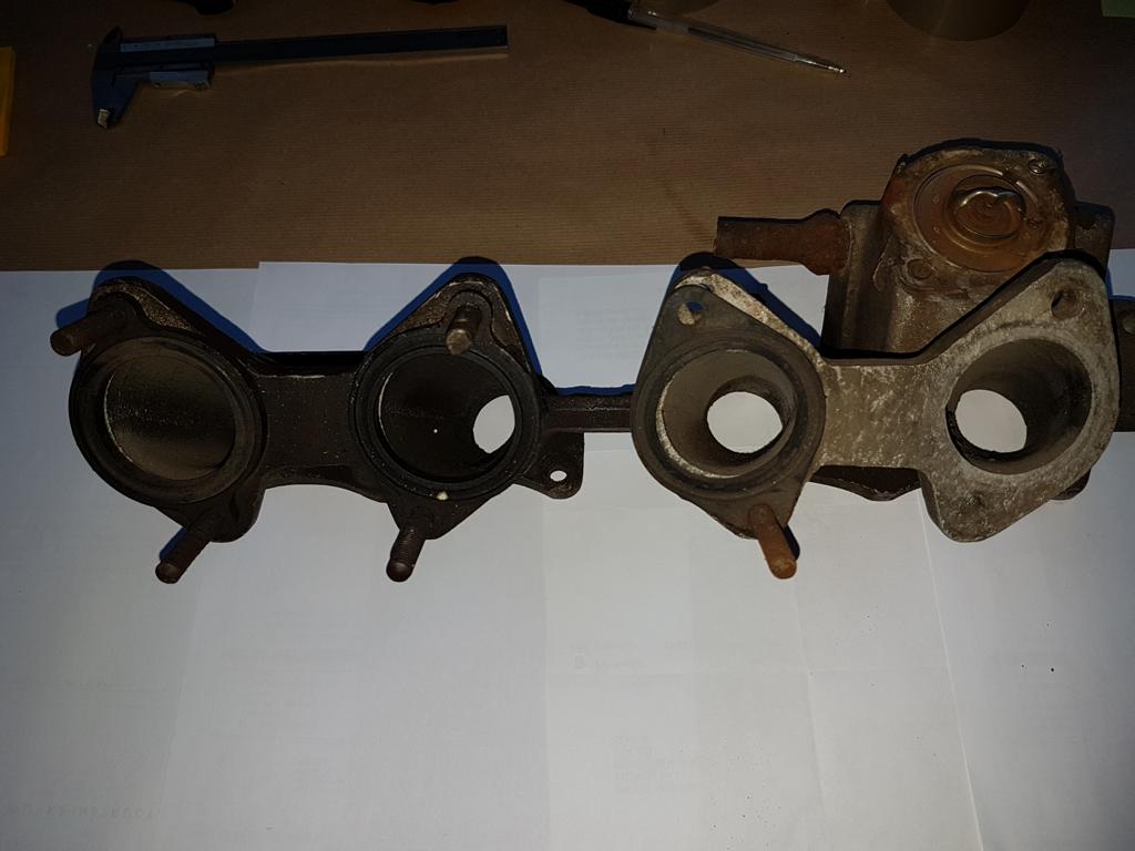 Am Motor habe ich nichts überholt. Lediglich habe ich mir eine neue Ansaugbrücke für die zwei Weber-Doppel-Vergaser bei Adrian ( ebay.co.uk – roverland.eu) besorgt. Sie war gebraucht und ein Gewinde versaut. Ich habe es mit J-B Weld zugeklebt neu Gewinde gebohrt(hält schon / Jahre). Nach dem Zusammenbau wollte ich mal sehen wie viel km/h der Lima schafft, kam aber nicht über 170 km/h. Eine Zündkerze war danach hin.